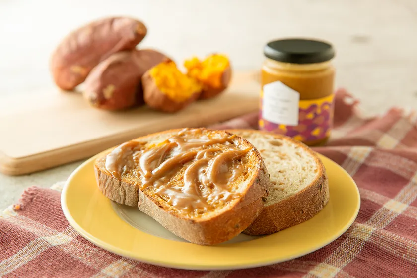 糖度が高く、とろける甘さから“蜜芋”と呼ばれている安納芋。その安納芋に、クリーミーな甘さの北欧はちみつと、体に優しいグラスフェッドバターを混ぜ合わせ、ペースト状に仕上げました。増粘剤や着色料などの添加物を一切加えず、自然な素材だけで作った体に優しいおいしさです。