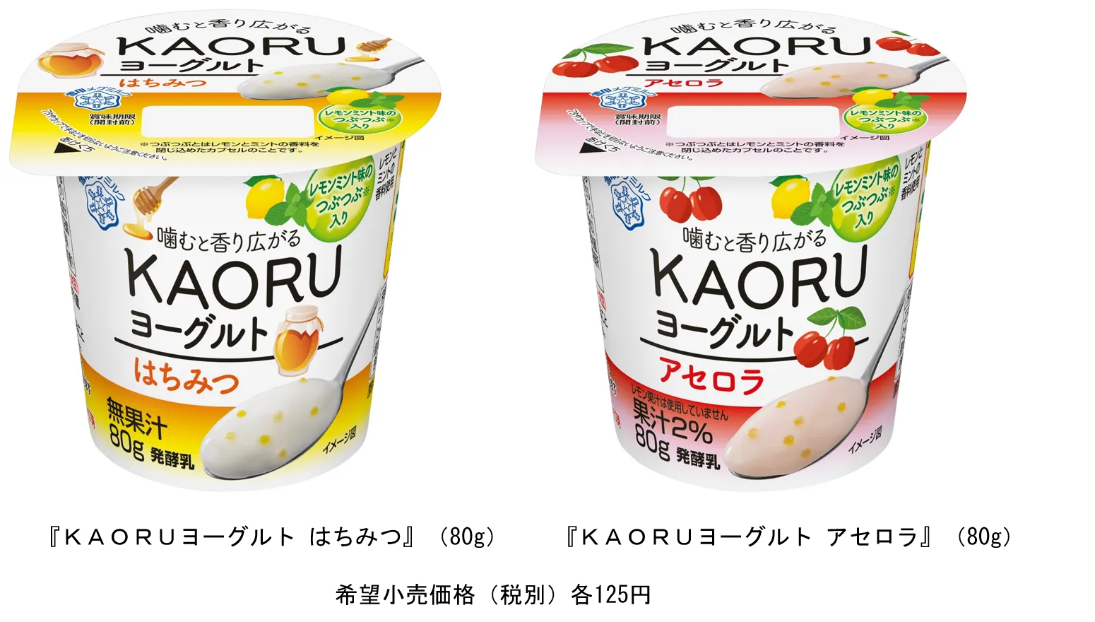 噛むと香り広がる、新感覚のヨーグルト! 『KAORUヨーグルト はちみつ』80g 『KAORUヨーグルト アセロラ』80g 新発売