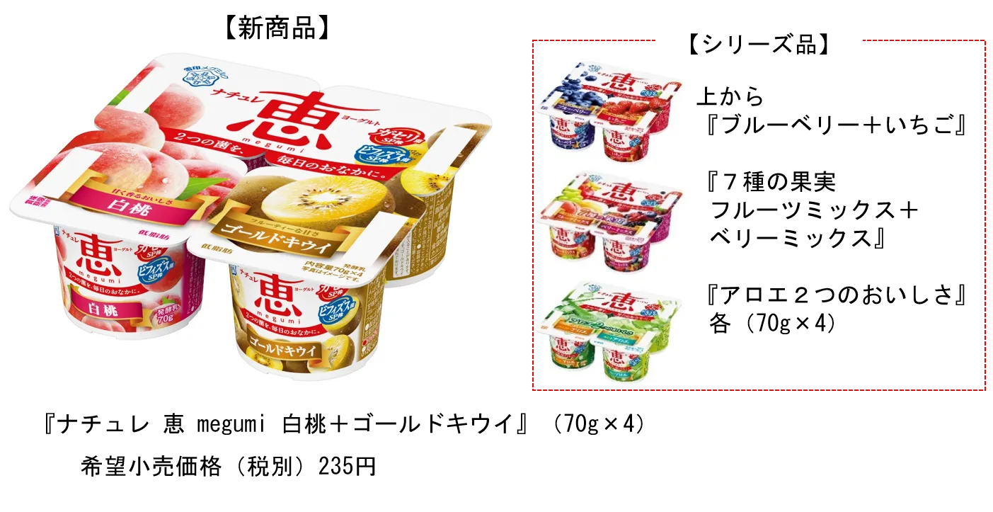 雪印メグミルク株式会社(本社:東京都新宿区、代表取締役社長:佐藤 雅俊)は、『ナチュレ 恵 megumi 白桃+ゴールドキウイ』(70g×4)を2022年9月27日(火)より全国にて新発売いたします。