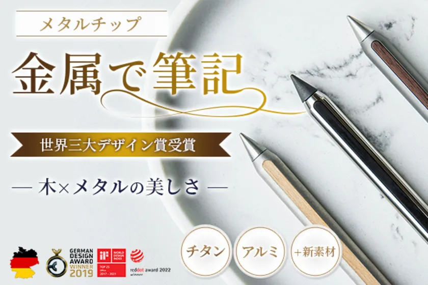 金属は、筆記具で一般的に使用されるアルミや真鍮のほか、チタン、マグネシウム、24金を採用。