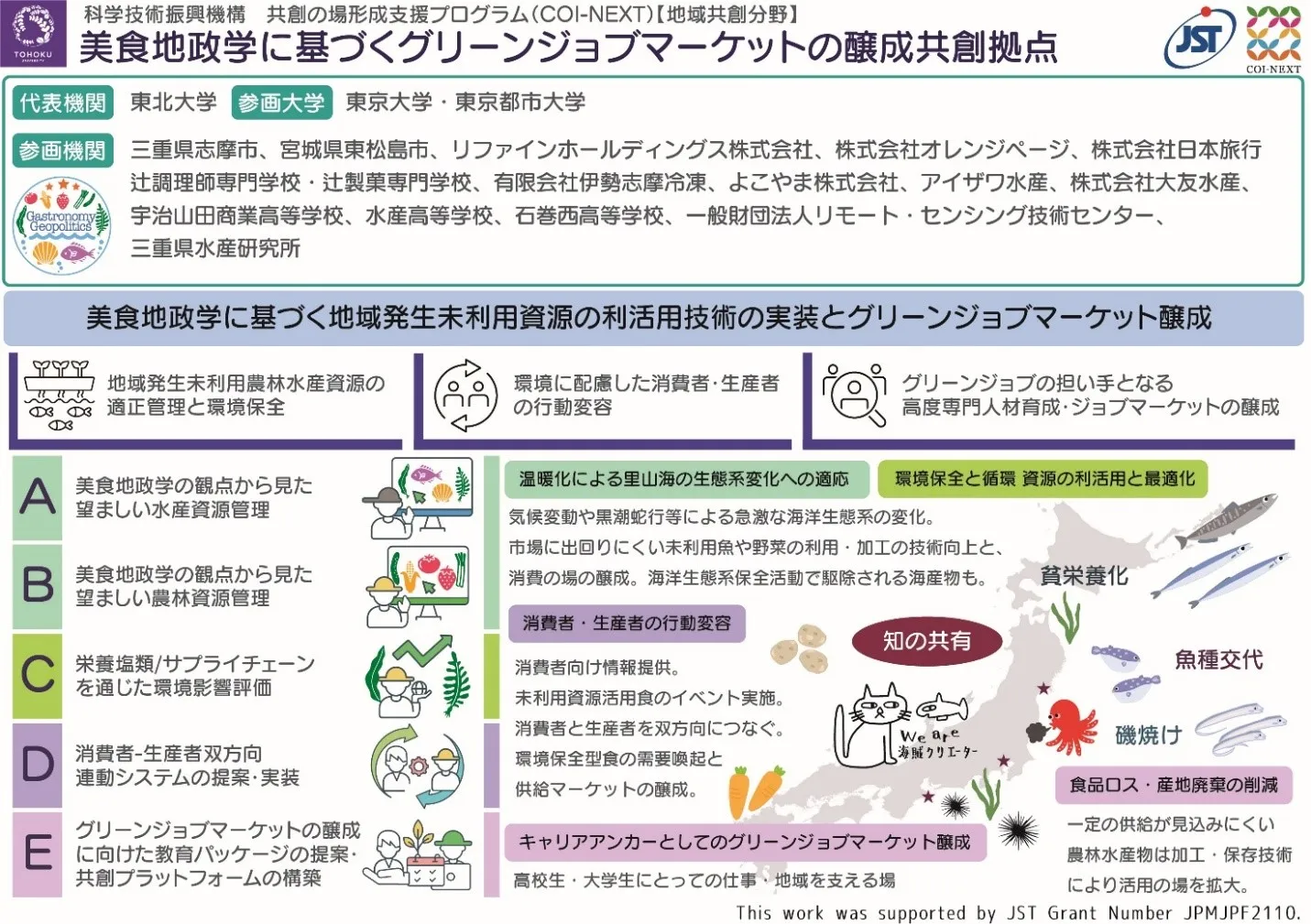 1.「国立研究開発法人科学技術振興機構(JST)共創の場形成支援プログラム(COI-NEXT)地域共創分野・育成型の『美食地政学に基づくグリーンジョブマーケットの醸成共創拠点』」について