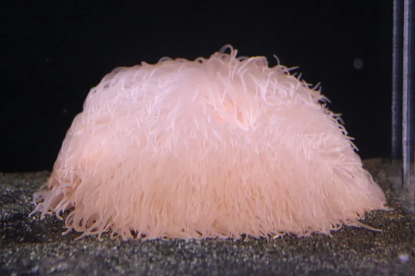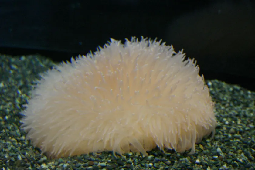 その姿は、もはやコキアと見間違えるほど、そっくり!こちらは海に暮らすイソギンチャクの仲間の「ダーリアイソギンチャク」です。花の「ダリア」から名前が付けられ、幾重にも重なったたくさんの触手が大輪の花にように見える、美しいイソギンチャクです。また、丸くなってボールのように転がりながら、流れに乗って移動することも知られています。
