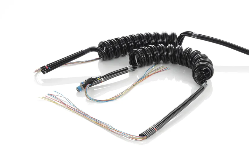 2. ポリウレタンチューブをコイル状あるいはフラット状に加工しています。伸縮部あるいは摺動部の集中配管に最適です。