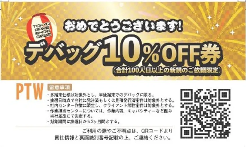 ・デバッグ10%OFF券(合計100人日以上の新規のご依頼限定)