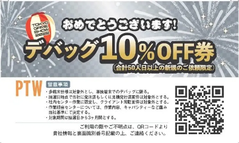 ・デバッグ10%OFF券(合計10人日以上の新規のご依頼限定)