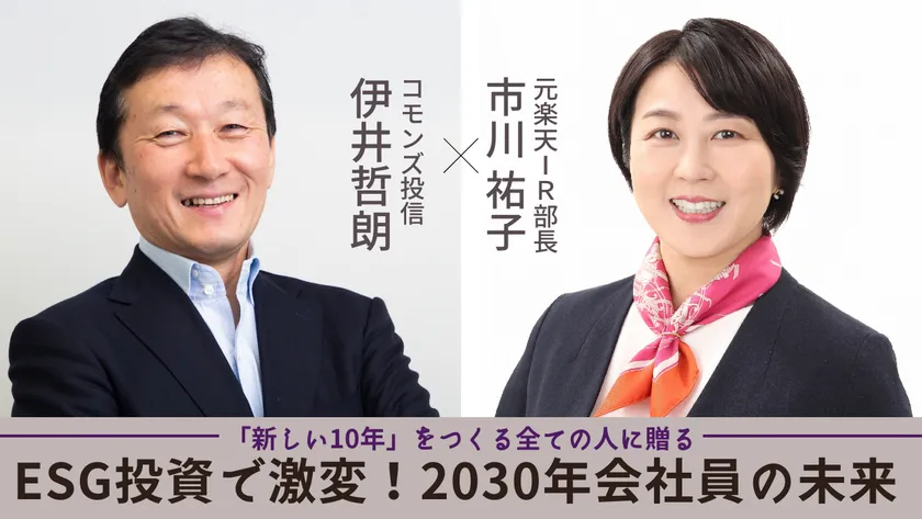 この度、9月に「ESG投資で激変!2030年会社員の未来」を上梓された元楽天IR部長でマーケットリバー代表取締役の市川 祐子さまをお招きし、コモンズ投信代表取締役社長 兼 最高運用責任者である伊井との対談セミナーが実現します。