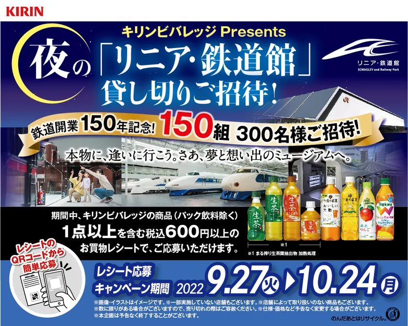 応募していただいた中から、抽選で150組300名様に、展示された新幹線の運転席等の普段は見ることができない箇所に潜入できる、“夜”の「リニア・鉄道館」貸し切りイベントにご招待する企画となります。