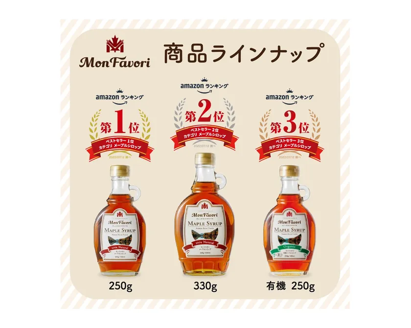 メープルシロップ国内売上No.1ブランド 「Mon Favori(モンファボリ)」 3商品がAmazonランキングTOP3を独占!