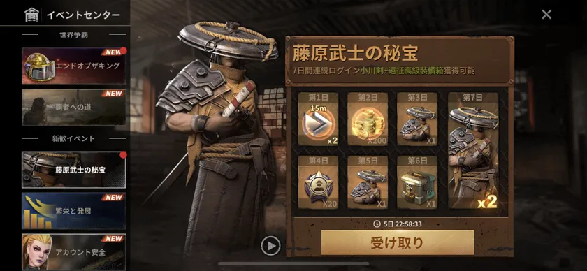 今ならログイン3日目でA級ヒーロー「小川剣」を手に入れるチャンス!小川剣は火力と攻城能力を備える強力なヒーローで、バトルには欠かせない存在です!