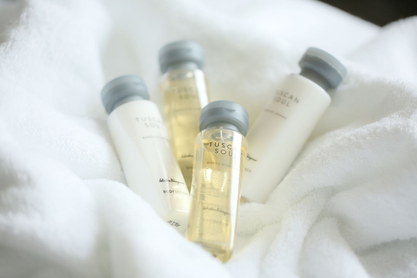 ①Lovely Purple Roomでのお泊りナイト(25㎡のデラックスツインルームをパープルカラーアイテムでデコレーション) ②ブッフェ朝食付(ホテル2階『Chef′s Live Kitchen』 にて) ③フェラガモ バスアメニティ4点セット ④大聖堂ビュー確約