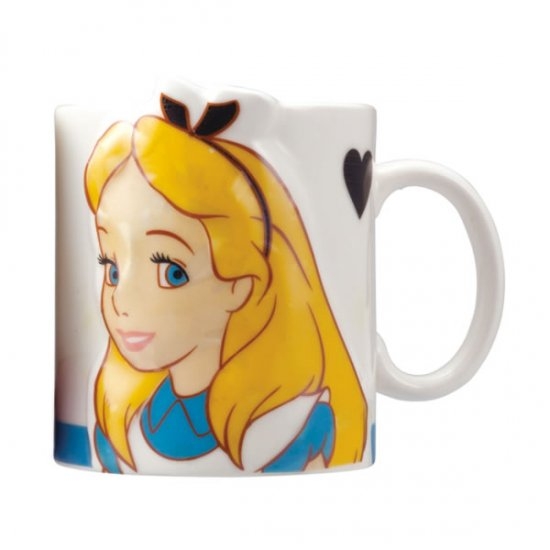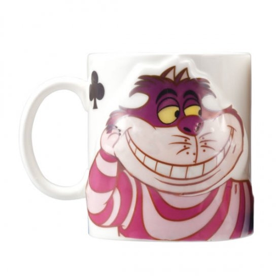 「ペア感が強すぎるマグは苦手」という方にはアリスとチェシャ猫のマグカップ。別々で使っても違和感のないデザインです。トランプ風にハートとクローバーも入っています♪
