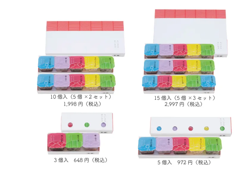 旧タイプの「ちいさなだいやす」の詰合せ商品は手土産やプレゼント、結婚・出産の内祝いなど、様々なシーンに対応できると大変ご好評いただきました。今回のリニューアルに際し、中元・歳暮などの形式にこだわる贈り物よりも、バレンタイン、ホワイトデー、父の日、母の日、敬老の日などのイベントや、誕生日、記念日などのパーソナルギフトを贈られる方が増加傾向にある昨今の状況を踏まえ、日持ちの点での安心感と、手頃な価格帯を意識し、3個入・5個入・10個入・15個入の4種のラインナップとしました。