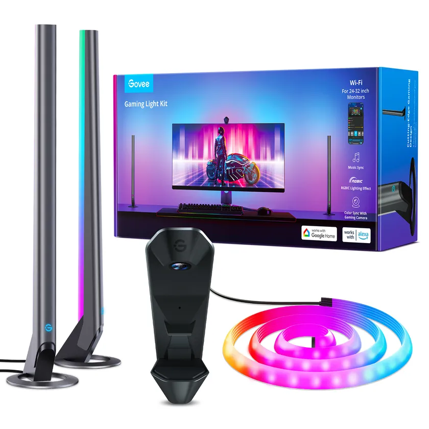 スタイリッシュなセンサーカメラと、2本のLEDバーライトに加え、モニター背面に貼り付ける高輝度LEDリボンライトを同梱。ゲーマーのデスクトップ環境を鮮やかに彩る、ゲーミングライトです。