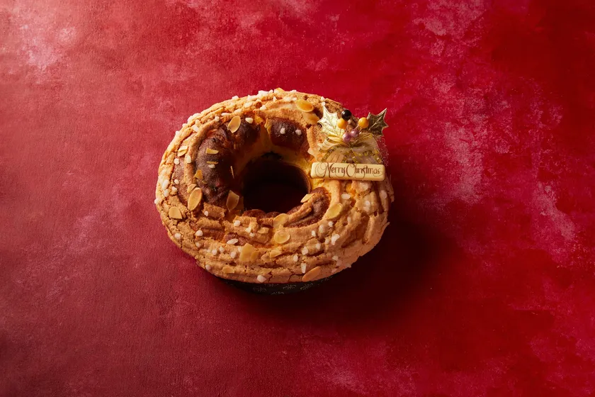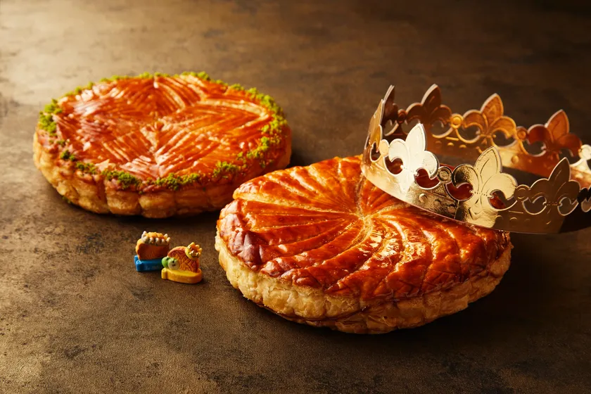 新年恒例で発売されるフランス伝統菓子ガレットデロワ。バター風味のアーモンドクリームを入れて焼き上げた定番のものに加え、2023年はピスタチオオレンジの新たなフレーバーが登場。風味豊かなバターの香りを纏ったパイ生地とピスタチオが生み出すよりリッチな味わいの中に現れる、爽やかなオレンジがアクセントになっています。中にはアーモンドのフェーヴを一つだけ忍ばせており、アーモンド入りの切り分けが当たった人は、良い一年を期待できるかも知れません。ご家族や友人と一年の運勢を占ってみてください。