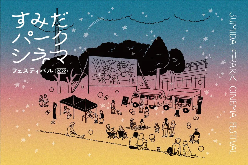 すみだパークシネマフェスティバル実行委員会は、東京都墨田区の隅田公園と近隣のミズマチ店舗で、すみだのまちを人と身近に感じる野外シネマイベント「すみだパークシネマフェスティバル2022」を2022年9月22日(木)~2022年9月25日(日)の4日間開催いたします。墨田区内外の出店者が自慢の商品を持って集まる「墨の市」が手掛けるマーケットや9月24日(土)、25日(日)にはアーティストによるライブも同時開催します。