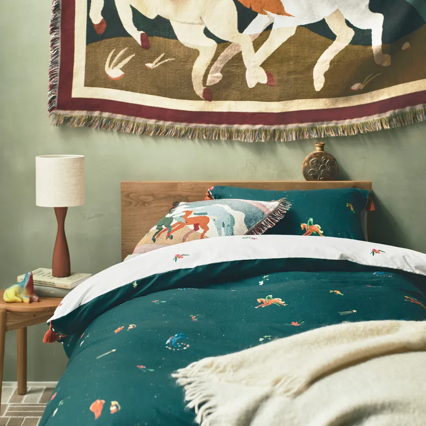 ・寝具(ピローケース ¥2,970/掛け布団カバー ¥11,000/ボックスシーツ ¥8,910)