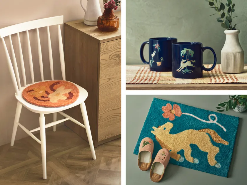 ●チェアパッド ¥2,970/マグカップ ¥1,980/玄関マット ¥5,500/バブーシュ ¥4,400