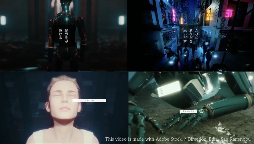 MVは初の全編Adobeストックで構成しています。懐事情と言ってしまうと寂しいですが、ありもの素材を繋ぐのは初の試みで、こちらも自分だけでは発想できなかったであろう新領域を開拓できました。壮大なAIのお別れストーリーです。