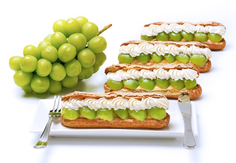グラン スイート サーカスは、季節に応じた旬の果物から主役となるフルーツをひとつチョイス。今秋はブドウを主役にフローズン エクレアとフローズン パリブレストに仕上げます。