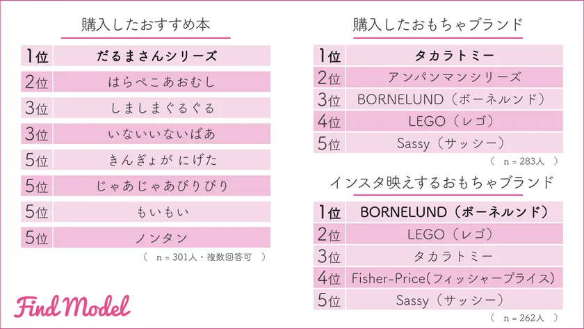 【インスタグラマーの子育て調査】 インスタグラマーが出産祝いにもらって嬉しかったおもちゃ 1位は「BORNELUND(ボーネルンド)」