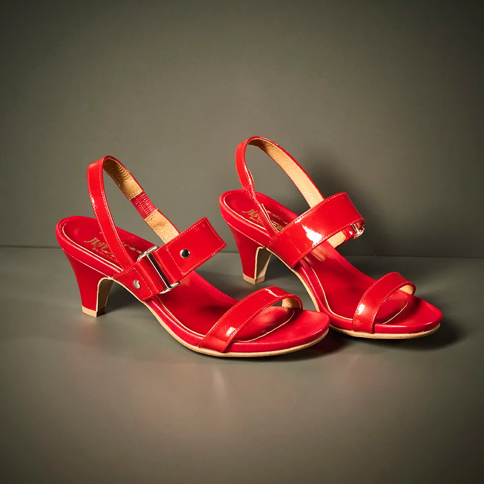 一話毎に様々なファッションに身を包む峰不二子ですが、PART1シリーズの中でも第一話で描かれている赤いサンダルに着目しました。70年代に好まれたエナメル素材と金具使いを特徴としながら、緩やかな足裏に合わせた凹凸を持つフットベッド型のインソールにするなど、履きやすさを加えたマドラス流のアレンジを施しました。