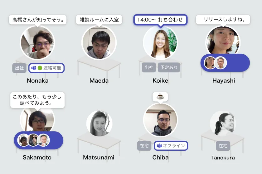 Microsoft Teamsのステータス(プレゼンス)をRemotty上に表示できるようになりました。「連絡可能」や「取り込み中」「オフライン」など、他のメンバーの状態が一目でわかります。