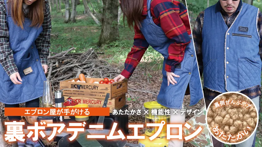 秋冬アウトドアもおしゃれにあたたかく エプロン屋が手がける裏ボアデニムエプロン 「Makuake」で9月1日~公開中!