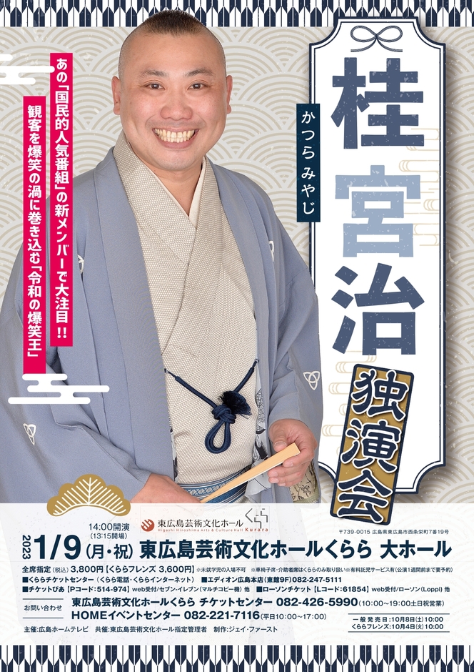 広島ホームテレビ(所在地:広島県広島市)は、主催で2023年1月9日(月・祝)「桂宮治 独演会」を東広島芸術文化ホールくららで開催いたします。