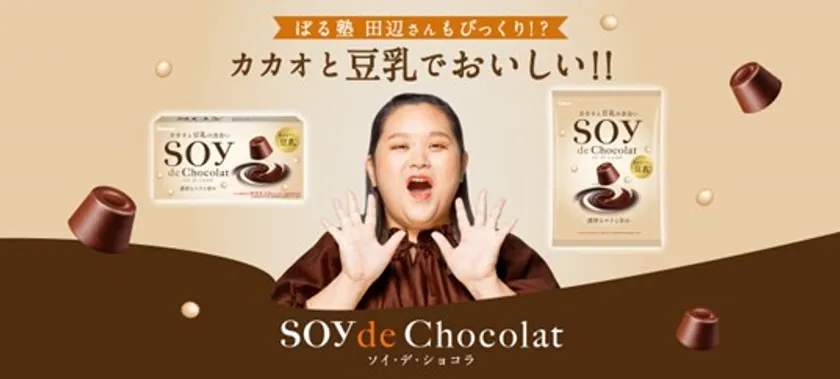 カバヤ食品株式会社(本社:岡山市、代表取締役社長:野津 基弘)は、乳原料の代わりに豆乳をたっぷり使用して、おいしさと健康の両立を目指した新カテゴリーのチョコレート『SOY de Chocolat(ソイ・デ・ショコラ)』(以下『ソイ・デ・ショコラ』)を9月27日(火)より全国発売します。発売に合わせて、人気お笑い芸人 ぼる塾 田辺智加さんをブランドアンバサダーに迎え、ブランドページを開設しました。さらに、期間限定のプレゼントキャンペーンも実施します。