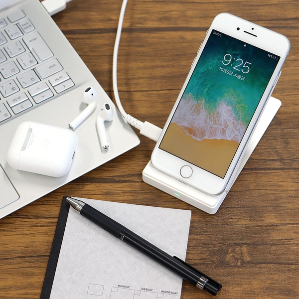 「MOT-QI10W01」はスマートフォンの充電時に当たり前のように行っているケーブルの抜き挿しが不要で、置くだけで充電が出来る製品です。スタンドとしても利用することが出来るので、置いたままの操作も可能。またiPhoneの急速充電7.5Wにも対応していて、ビジネスシーンでスマートフォンを利用される方にも便利で快適な充電ライフを送ることができる製品です。