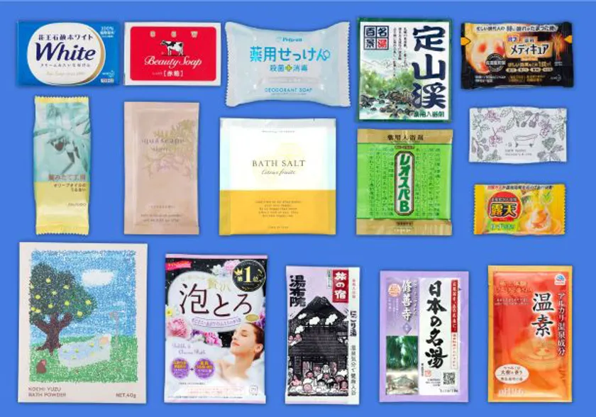 今回のキャンペーンは日本浴用剤工業会が日本石鹸洗剤工業会の協賛を受けて、クイズに正解いただいた方の中から抽選で商品券(5万円)と入浴剤(20個)と化粧石鹸(5個)のサンプルセットを2名様に、入浴剤(20個)と化粧石鹸(5個)のサンプルセット(写真)を350名様にプレゼントいたします。
