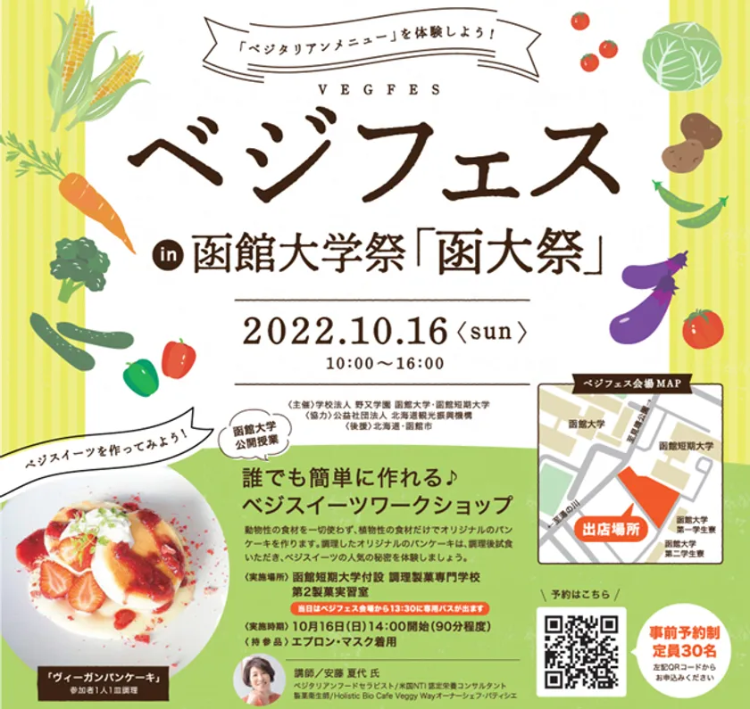 函館大学の公開授業として「誰でも簡単に作れる♪ベジスイーツワークショップ」を開催します。