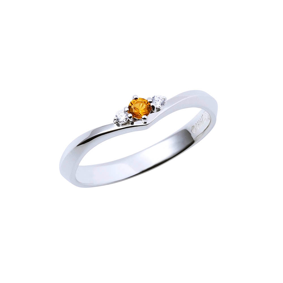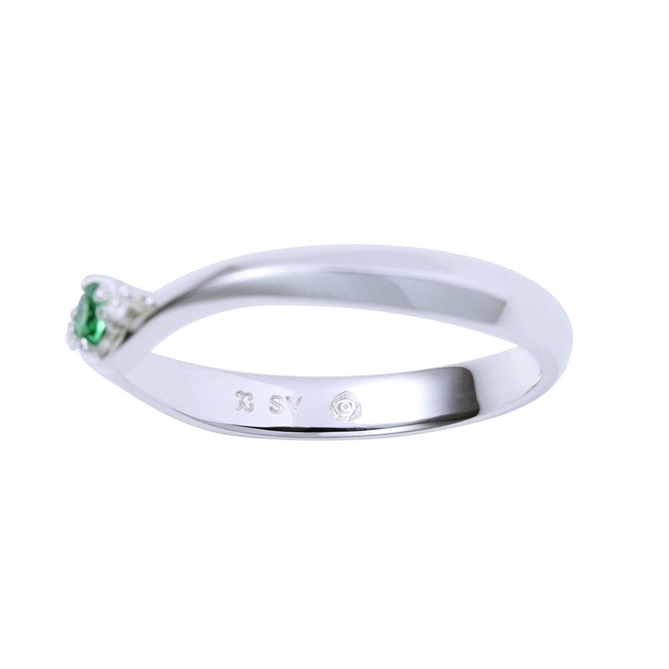 V字フォルムにイメージカラーストーンをセットしたシンプルなデザイン。