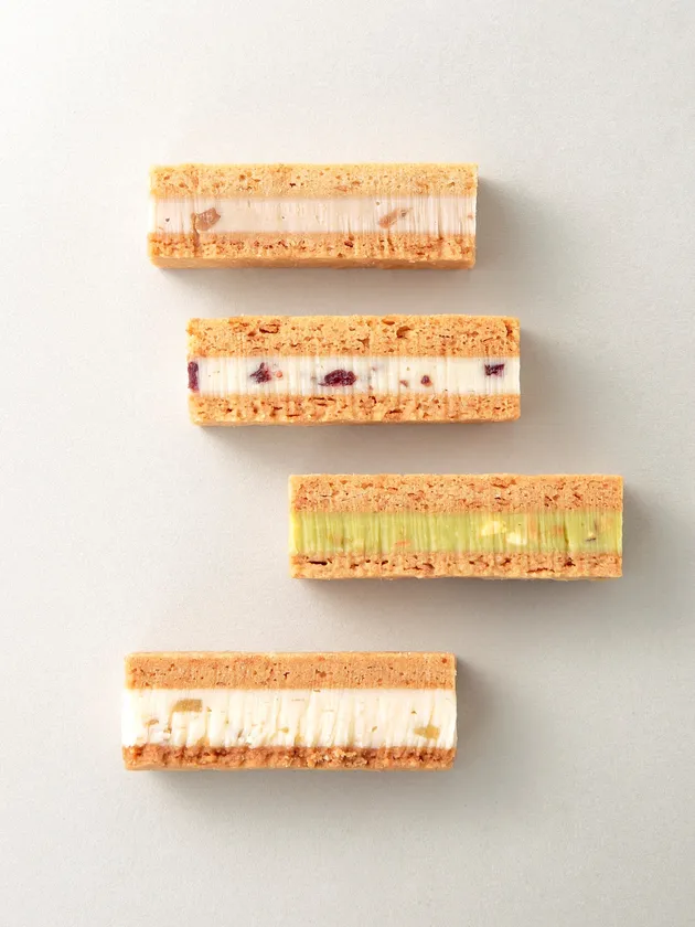 クローブ、カルダモン、ナツメグ、ジンジャー、シナモンを独自にブレンドして焼き上げたビスキュイにクランベリーとチーズガナッシュを挟んだお菓子です。頑張った自分へのちょっとしたご褒美にお楽しみいただきたい、とっておきのスペシャリテ。