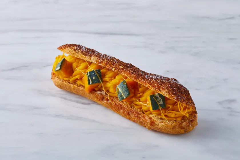 なめらかなカボチャクリームとダイス型にカットしたカボチャをシュー生地で挟みました。昨秋に引き続き、秋を味わえる一品です。