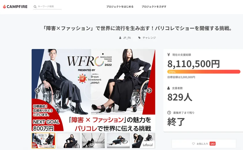 クラウドファンディングCAMPFIREでは、829名の支援者、800万円を超える応援金を集めた。