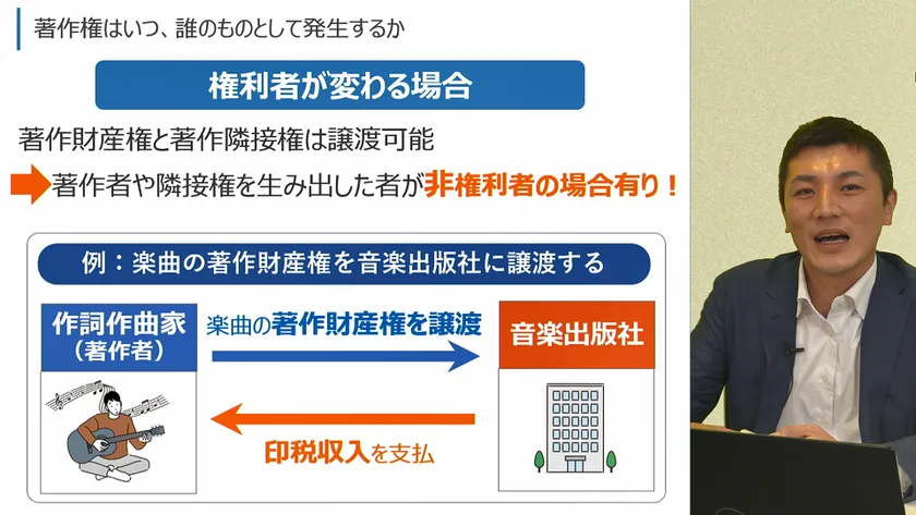 本講座は「著作権・著作物」とは何か、著作権の3分類である「著作財産権」「著作者人格権」「著作隣接権」について、またどのような行為が著作権侵害にあたるのか事例を交えながら解説します。