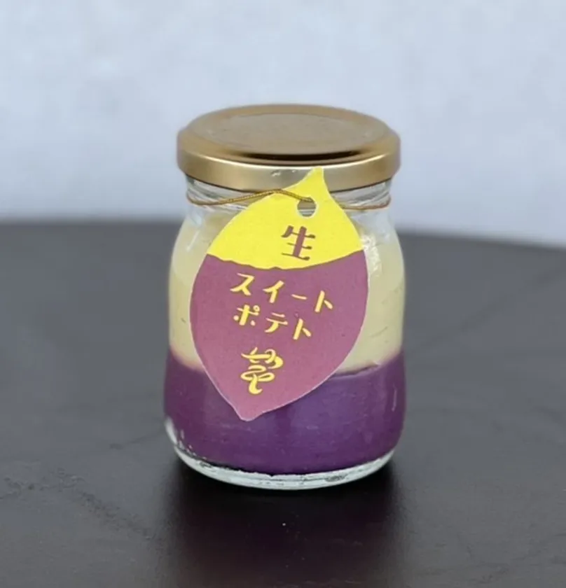 当店の人気商品、芋いつもスイートポテトの「生感」を全面に出した新商品“生スイートポテト”を周年祭より発売開始いたします。芋いつもスイートポテトは焼くことでふわふわ食感が特徴的なスイートポテトですが、新登場の生スイートポテトは瓶に入ったとろっとクリーミーななめらか食感で、プリンのようにスプーンですくってお召し上がりいただく特別感のある商品に仕上げました。見た目もかわいいプレーンと紫芋の2層タイプで華やかに。また瓶の底には、隠れたお芋ペーストが入っているので、食べ進めるとより濃いお芋感をお楽しみいただけます。芋いつもスイートポテトと生スイートポテト、どちらがお好きか是非食べ比べてみてください!
