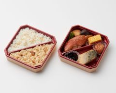 だしと醤油でふっくらと煮上げた金目鯛の煮つけと、脂がのった鯖の優しい味わいの味噌煮が主役の駅弁です。ご飯は深川めしと白米の2種類、味付けの異なる2種類の煮魚が味わえる贅沢な一品です。