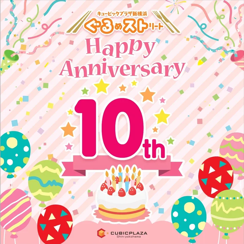 新横浜駅直結の商業施設「キュービックプラザ新横浜(運営:新横浜ステーション開発株式会社、代表取締役社長:藤川 紳)」1階ぐるめストリートは、2022年10月4日(火)に開業10周年を迎えます。
