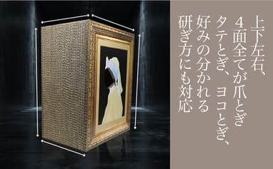 量産されている爪とぎは一般的にダンボールを貼り合わせてからカットしているのにくらべ、本商品は国内で1枚1枚をカットしてから手作業で丁寧に貼り付けを行っているため、表面・裏面以外の全ての面で爪がとげる仕様にしています。また、ステップとしても使えるよう比較的丈夫な設計にしております。開発をすすめる中、猫カフェや愛猫家の方々にモニターをお願いし何度も試作をくり返し最終仕様を決定しました。