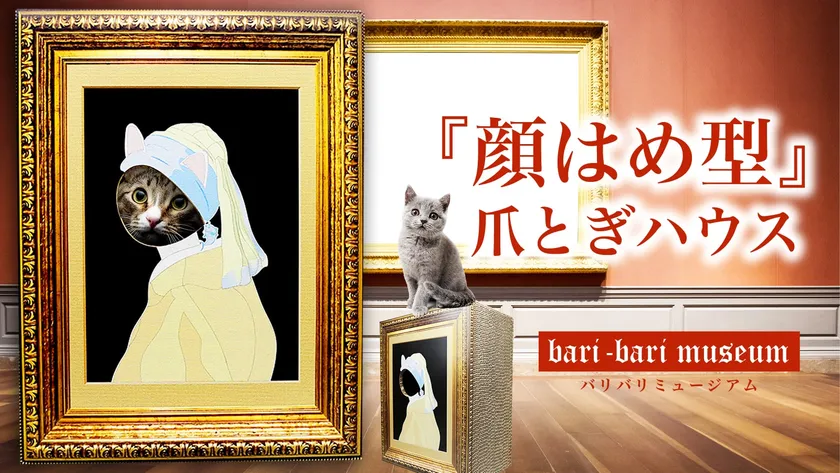 顔はめが可愛い!写真も撮れる猫用爪とぎがMakuakeにて 登場 「バリバリミュージアム~フェルメール絵画風~」