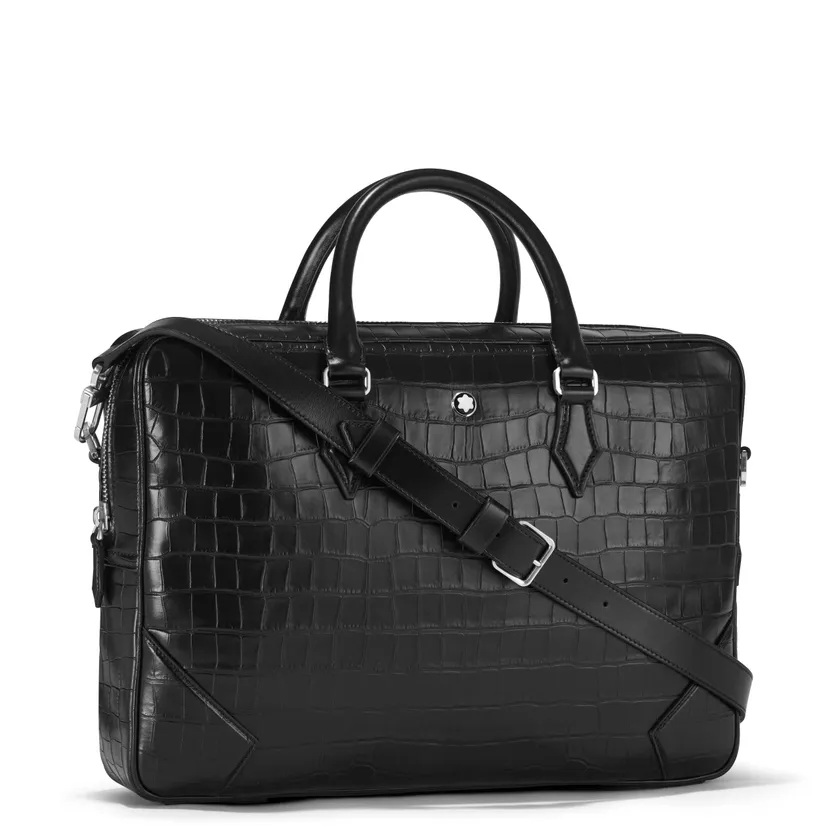 オープンを記念して、マイスターシュテュック セレクションのドキュメントケース(税込価格:243,100円)、ミニバッグ(税込価格:117,700円)、リストハンドル付ポーチ(税込価格:117,700円)が、モンブラン小田急百貨店新宿店のみで先行発売されます。つややかなカーフスキンレザーに、クロコダイルの型押しプリントが施されたエレガントなコレクションです。ドキュメントケースはラグジュアリーなビジネスコーディネイトを引き締める強い味方です。女性にもおすすめしたいミニバッグとポーチはオンにもオフにも活躍するコンパクトな相棒です。