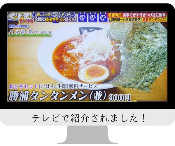 『日本橋 鳥久』の勝浦タンタンメンはメディアにも取り上げられた話題の一品。