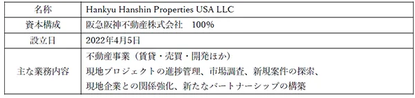 ■Hankyu Hanshin Properties USA LLC の概要