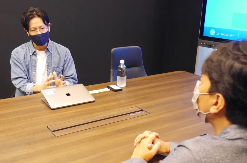 「立ち上げ当初のシェアオフィスは、2.98平米ほどの2名席に最大8名が入るなど、とても満足できる環境ではありませんでした。窓も冷房もなく、夏場はうちわを扇いでいました。出社人数が多い時は、近所のカフェで作業せざるを得ない時もありました。その後、資金調達ができたため、規模の大きいシェアオフィスへ移転しました。執務スペースとしては広さも環境も問題ありませんでしたが、顧客との打ち合わせなどで必要な会議室のキャパシティが少なくなかなか予約ができないという課題もありました。」(角)
