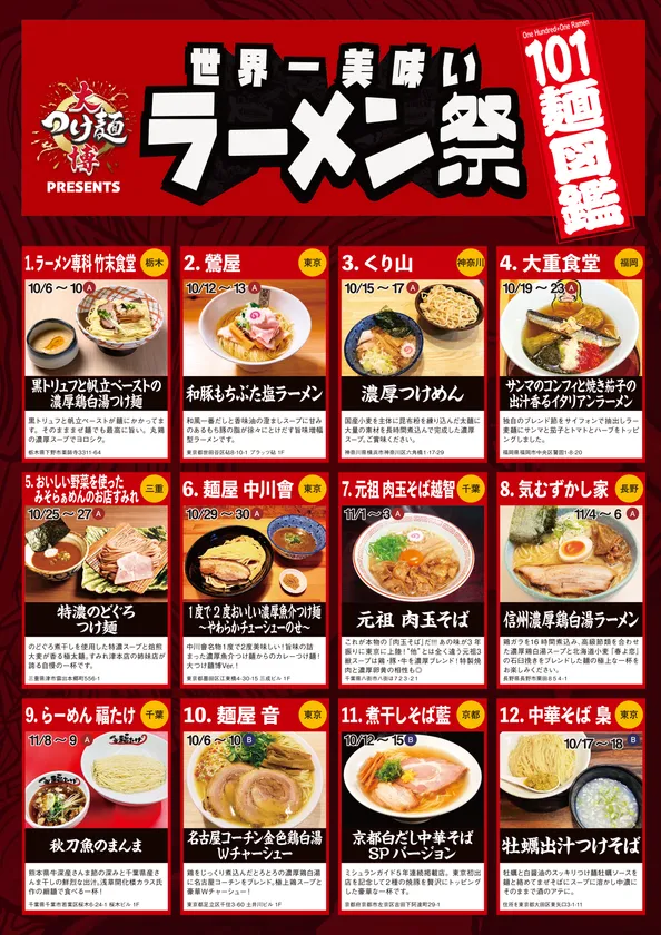 日本中の名店101店舗が集結!大つけ麺博 Presents 「世界一 美味い ラーメン祭」10/6~11/9新宿で開催