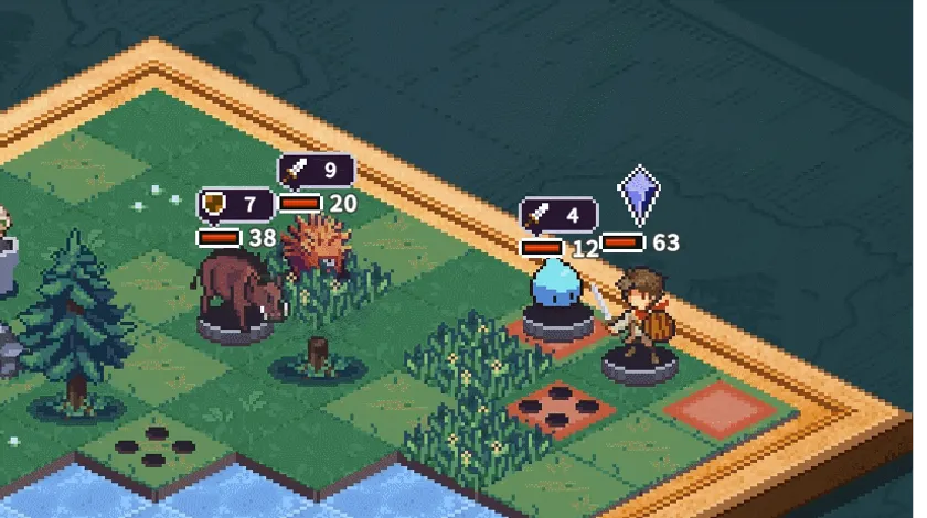 『ロスト イン ファンタランド』はレトロなピクセルグラフィックを採用しています。制作チームによると、ディテールに拘った懐かしいビジュアル体験をお届けしたいと思いピクセルグラフィックを採用したとのことです。8*8という小さなボード世界ですが、モンスターであるスケルトンや森の中にいる細い蛇でさえ、それぞれのアクションがデザインされていました!