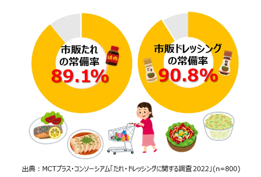 新型コロナ前の日常を取り戻しつつあるものの、続く健康意識の高まりや内食機会の増加によって、「自炊」が定着している人も多いのではないでしょうか。手軽に味が決まるたれやドレッシングは、食事において今や欠かせないアイテムの1つです。全国30~40代男女を対象とした調査によると、ほとんどの家庭にたれ・ドレッシングが常備されていることが分かりました。組み合わせ次第で楽しみ方は無限大のたれ・ドレッシング。今回はダイエット・健康食レシピのエキスパートである管理栄養士の金丸絵里加先生に、「MCT万能たれドレッシング」について教えてもらいました。「MCT万能たれドレッシング」とは、脂肪燃焼効果が期待されるMCTオイルとおうちにある材料でつくる手作り調味料のこと。たれとしてもドレッシングとしても、万能に使えるお手軽レシピを3つ紹介します。