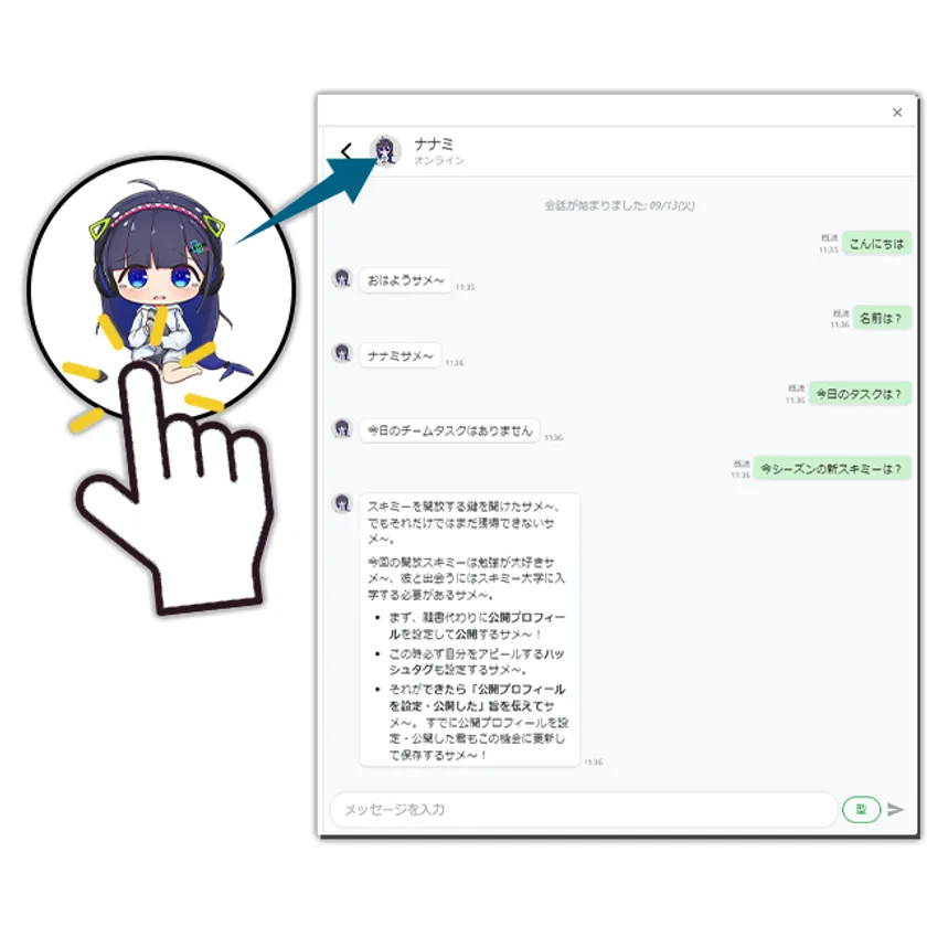 SkimieのチャットBOT機能を利用して隠されたシナリオを解決するとゲットできます。